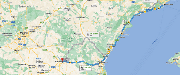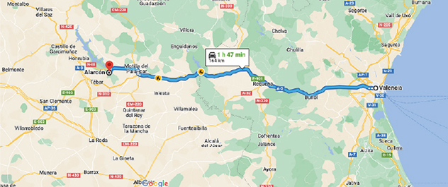 Los aeropuertos comerciales más cercanos son los de Valencia, 160 km / Madrid, 200 km / Alicante, 270 km